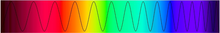 Sichtbares Licht reicht von etwa 380 Terra Hz für rot bis zu 790 Terra Hz für violet